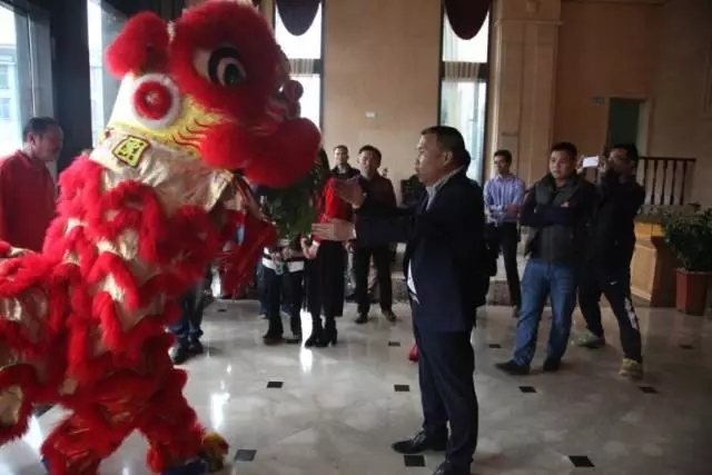 舞獅表演是喜慶節(jié)日不可缺少的重頭戲,在這蓄勢(shì)蓬勃的日子華業(yè)集團(tuán)請(qǐng)來(lái)專業(yè)舞獅團(tuán)隊(duì)帶來(lái)精彩演繹,舞獅中登高、騰轉(zhuǎn)等出彩動(dòng)作引來(lái)陣陣喝彩。在鑼鼓梆鈸聲中瑞獅登門(mén)拜年,步步高登、步步高升。在爆竹聲中金獅賀歲,為龍其偉總裁獻(xiàn)上祥瑞。