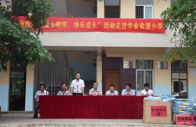 華業(yè)集團(tuán)領(lǐng)導(dǎo)向希望小學(xué)捐贈(zèng)物資