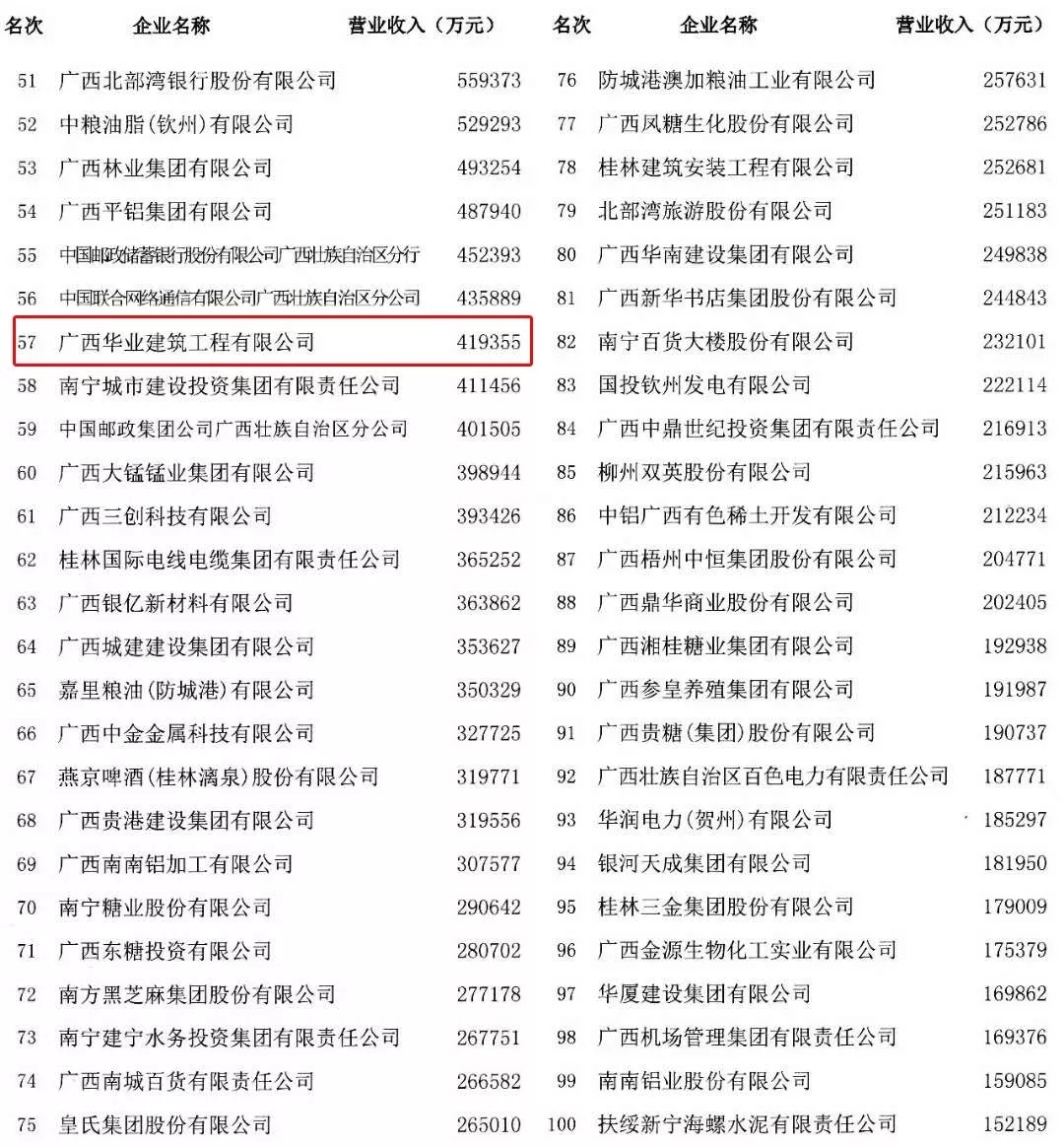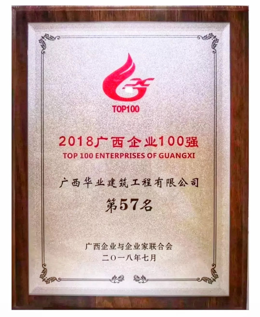 2018廣西百?gòu)?qiáng)企業(yè)隆重揭曉! 廣西華業(yè)建筑工程有限公司位列廣西百?gòu)?qiáng)企業(yè)第57名,廣西民營(yíng)企業(yè)50強(qiáng)第15名!
