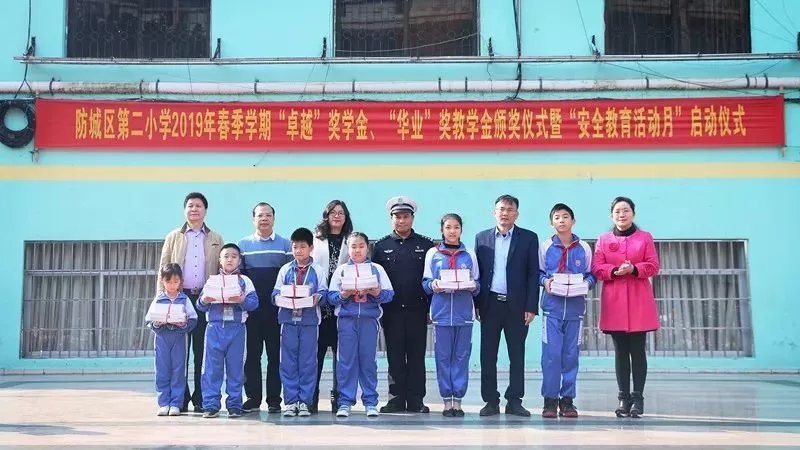 2019年3月11日,廣西華業(yè)投資集團(tuán)有限公司副總裁廖人興、工會主席鐘麗霞赴防城區(qū)第二小學(xué)參加“華業(yè)獎教學(xué)金頒獎儀式”,對過去的一年里辛勤工作的老師們、努力學(xué)習(xí)的同學(xué)們進(jìn)行表彰獎勵。
