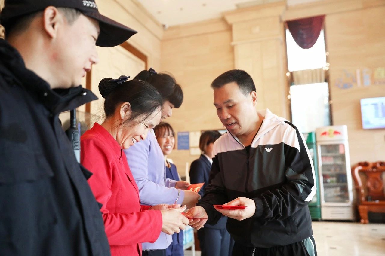 總裁給值守的員工們發(fā)放新年紅包