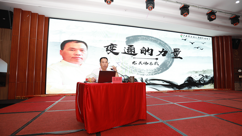 講堂上,龍其偉總裁引用《周易》中的經(jīng)典名句“窮則變、變則通、通則久”開篇,結合自身的經(jīng)歷及華業(yè)集團的發(fā)展歷程,講述了華業(yè)集團在面對困境和機遇時,如何利用變通的力量在危機中抓住機遇、打開局面,深刻闡述了“變通的力量”在工作和生活中的重要意義。