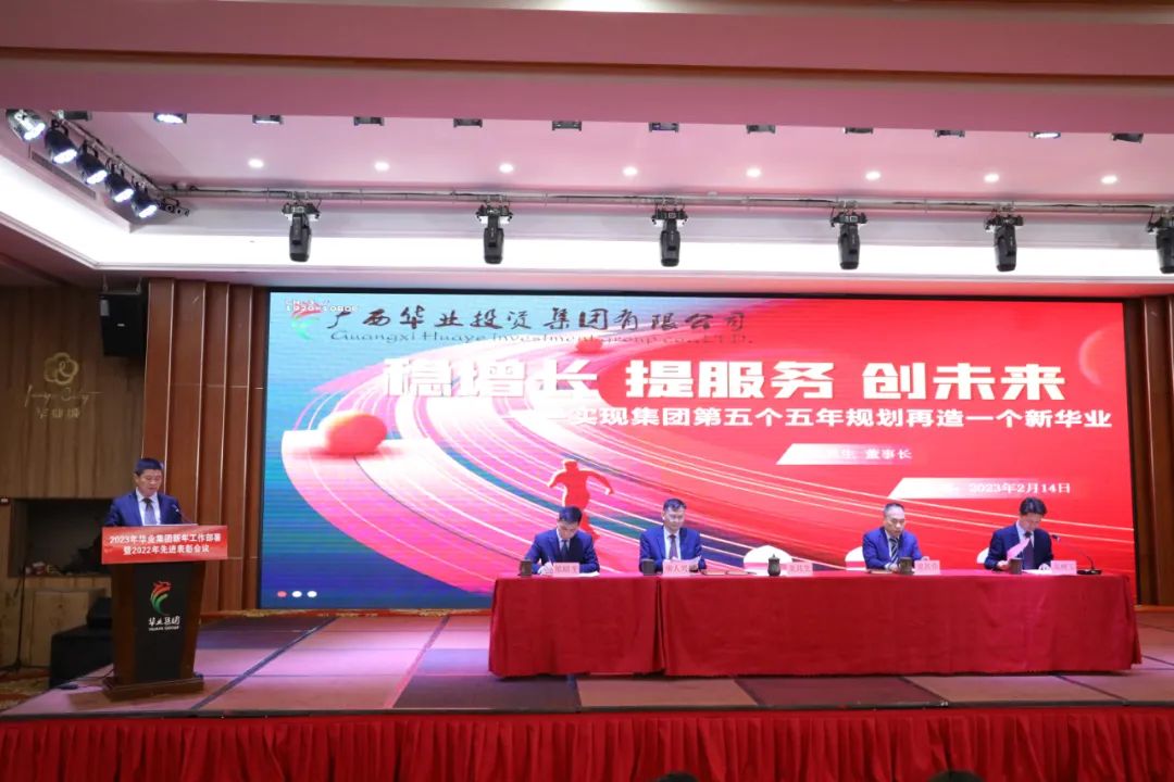 2023年2月14日下午,廣西華業(yè)投資集團(tuán)有限公司2023年工作部署暨2022年先進(jìn)表彰會(huì)議在防城港市華業(yè)城順利召開(kāi)。集團(tuán)董事長(zhǎng)龍其生、總裁龍其偉,副總裁廖人興、龐樹(shù)玉、熊昭斐等領(lǐng)導(dǎo)出席會(huì)議。會(huì)議由集團(tuán)黨委書(shū)記、副總裁龐樹(shù)玉主持,集團(tuán)、各子公司員工以及獲獎(jiǎng)代表共316人參加會(huì)議。