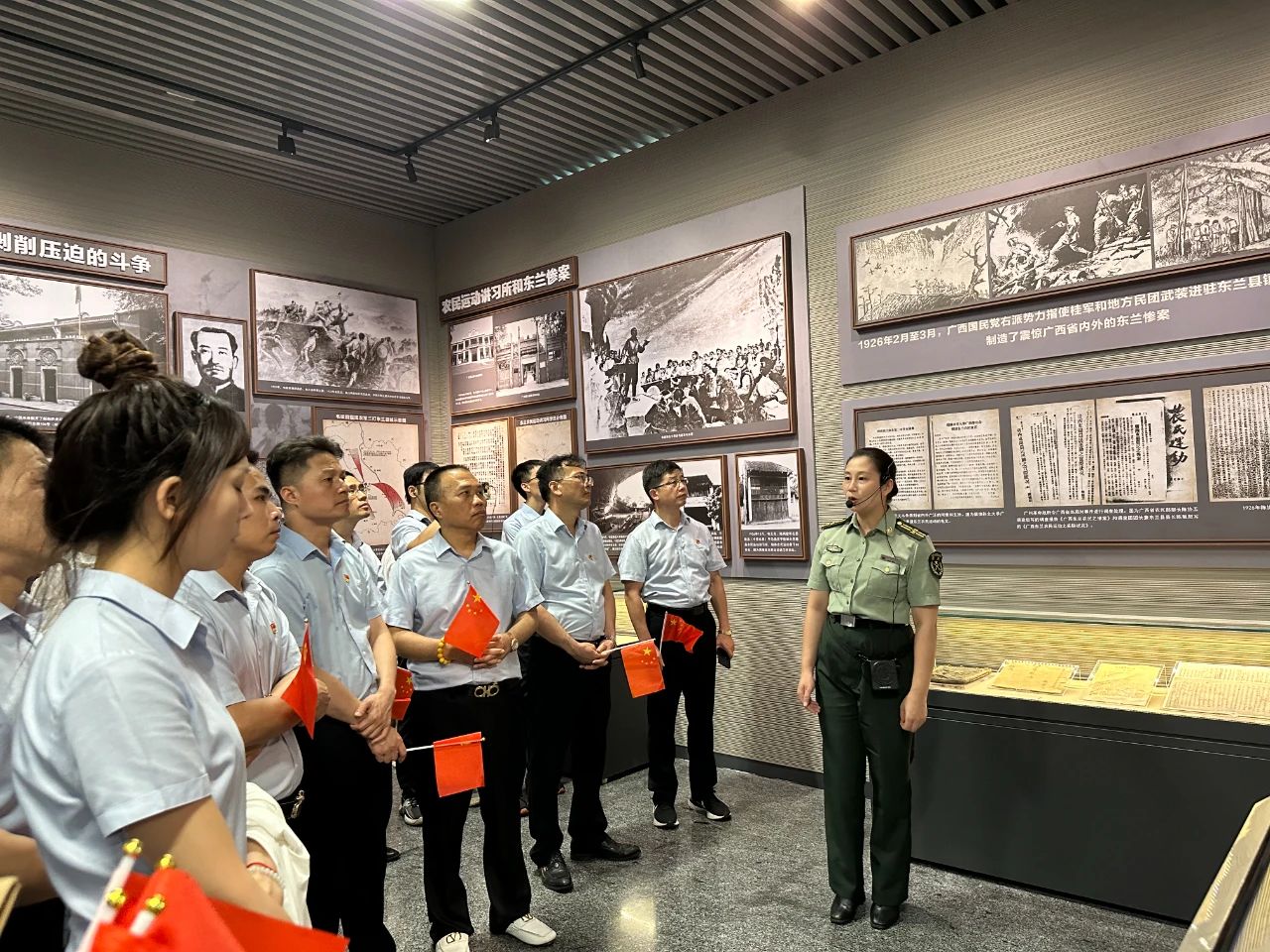 上午7時(shí)30分,全體人員統(tǒng)一于南寧乘車出發(fā),10時(shí)30分,抵達(dá)百色起義紀(jì)念園?;顒?dòng)首站為園內(nèi)百色起義紀(jì)念館,該館融合民族文化、民族符號(hào)于公共空間、展陳細(xì)節(jié),通過(guò)栩栩如生的浮雕展示、豐富的圖文事例及聲光影像,將百色起義和右江革命根據(jù)地斗爭(zhēng)的壯麗畫卷重現(xiàn)在人眼前,讓大家深切感受到了鄧小平等革命先輩們的信仰之堅(jiān)定、革命之無(wú)畏,切實(shí)喚醒了參觀者的紅色記憶,激勵(lì)大家沿著革命先輩的足跡繼續(xù)前行,努力走好新時(shí)代的長(zhǎng)征之路。據(jù)了解,百色起義紀(jì)念館內(nèi)含革命文物資料和圖片資料共計(jì)1400多件(幅)。