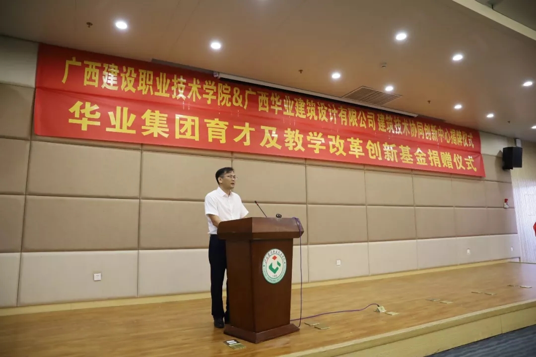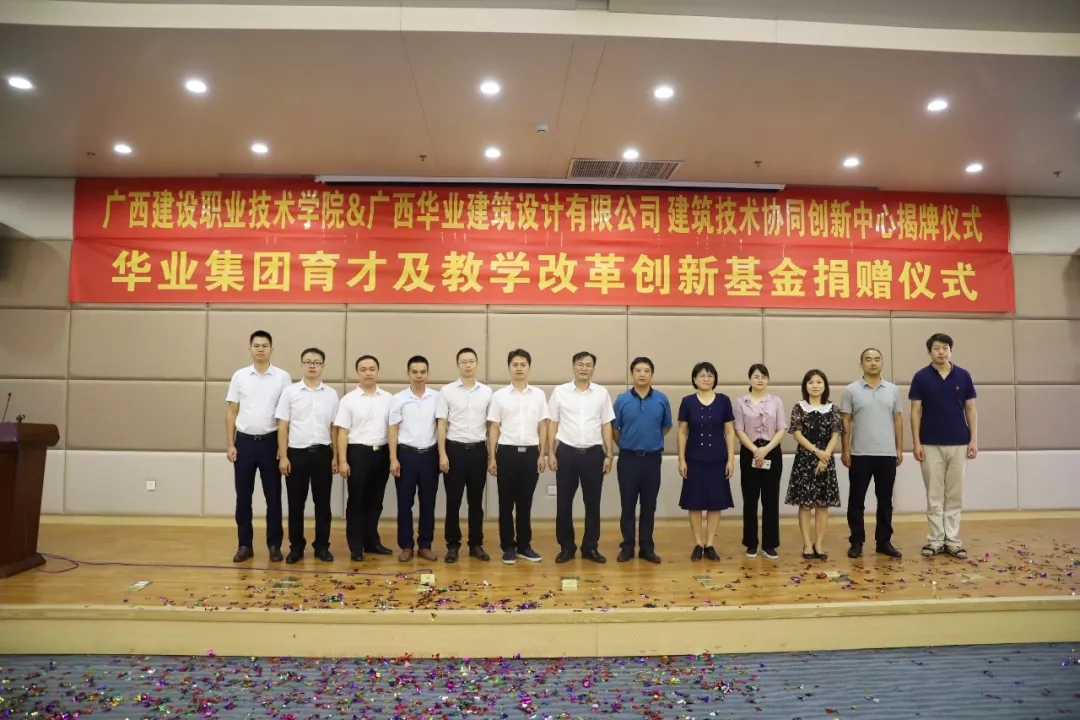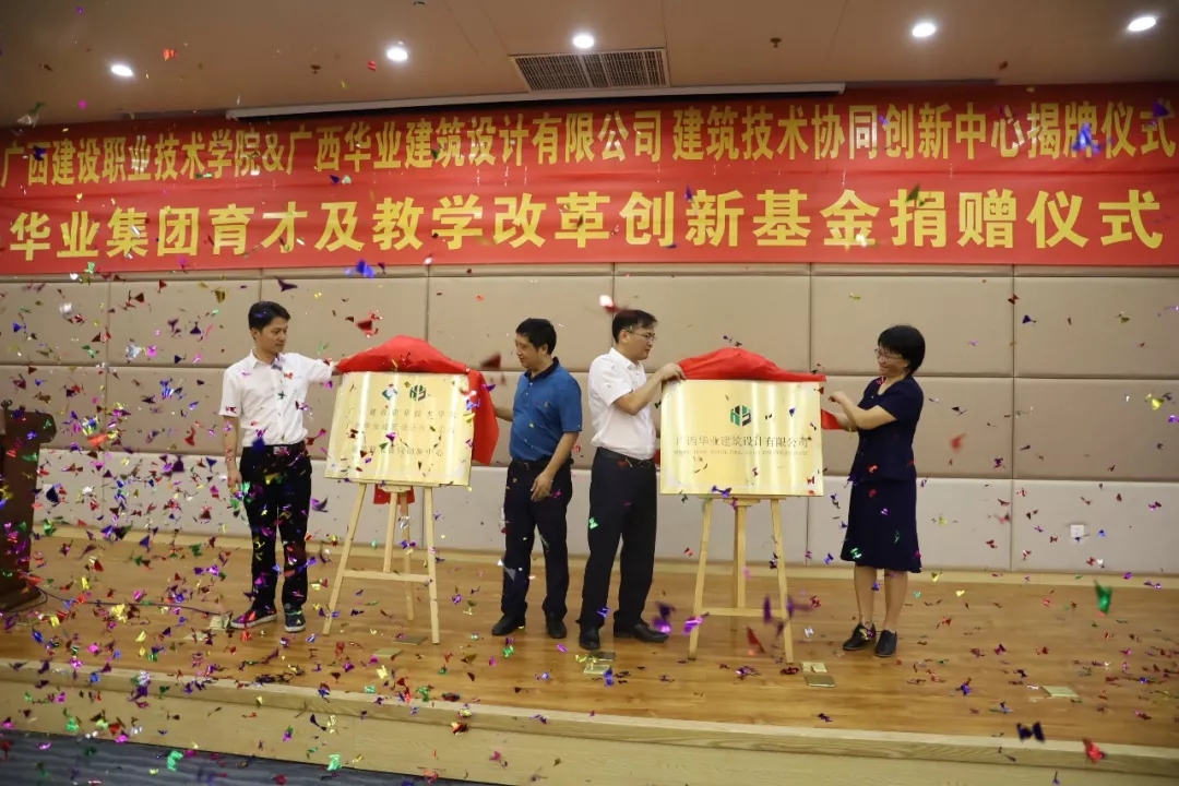 廣西華業(yè)投資集團育才及教學改革創(chuàng)新基金捐贈暨廣西建設職業(yè)技術學院&廣西華業(yè)建筑設計有限公司建筑技術協(xié)同創(chuàng)新中心揭牌儀式順利舉行