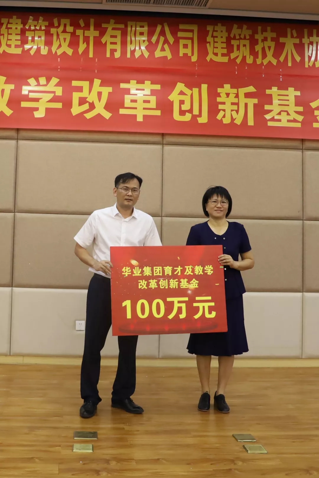 隨后,廖人興副總裁代表華業(yè)集團向廣西建設職業(yè)技術學院捐贈100萬元人民幣設立華業(yè)集團育才及教學改革創(chuàng)新基金,廣西建設職業(yè)技術學院土木工程系主任姚琦代表學院接受捐贈,并對華業(yè)集團慷慨解囊表示衷心感謝。華業(yè)集團育才及教學改革創(chuàng)新基金的設立,充分體現(xiàn)了華業(yè)集團對深入開展校企合作、精準落實教育教學改革、培養(yǎng)專業(yè)型人才的堅定決心和信心。