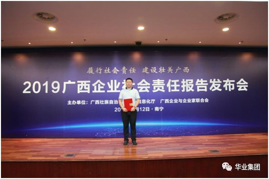 本次發(fā)布會以“履行社會責任、建設壯美廣西”為主題,以展示交流為核心,以典型發(fā)布與書面發(fā)布相結合,我區(qū)66家企業(yè)面向社會公開發(fā)布2018年度社會責任報告。華業(yè)集團憑借2018年的優(yōu)秀業(yè)績及高度的社會責任感,成功入選發(fā)布行列。