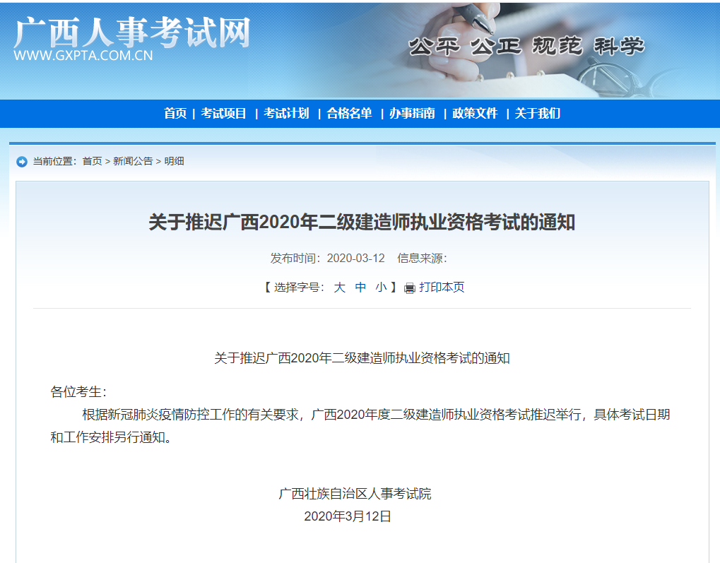 關(guān)于推遲廣西2020年二級建造師執(zhí)業(yè)資格考試的通知