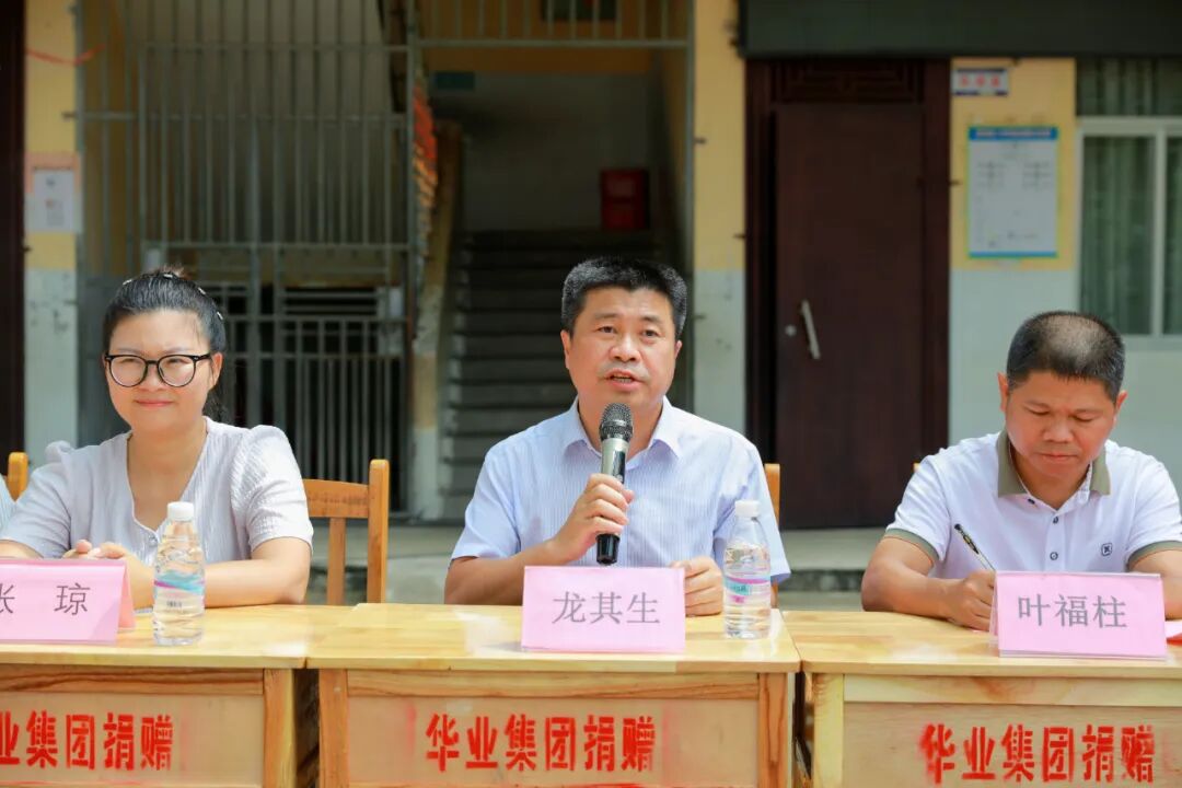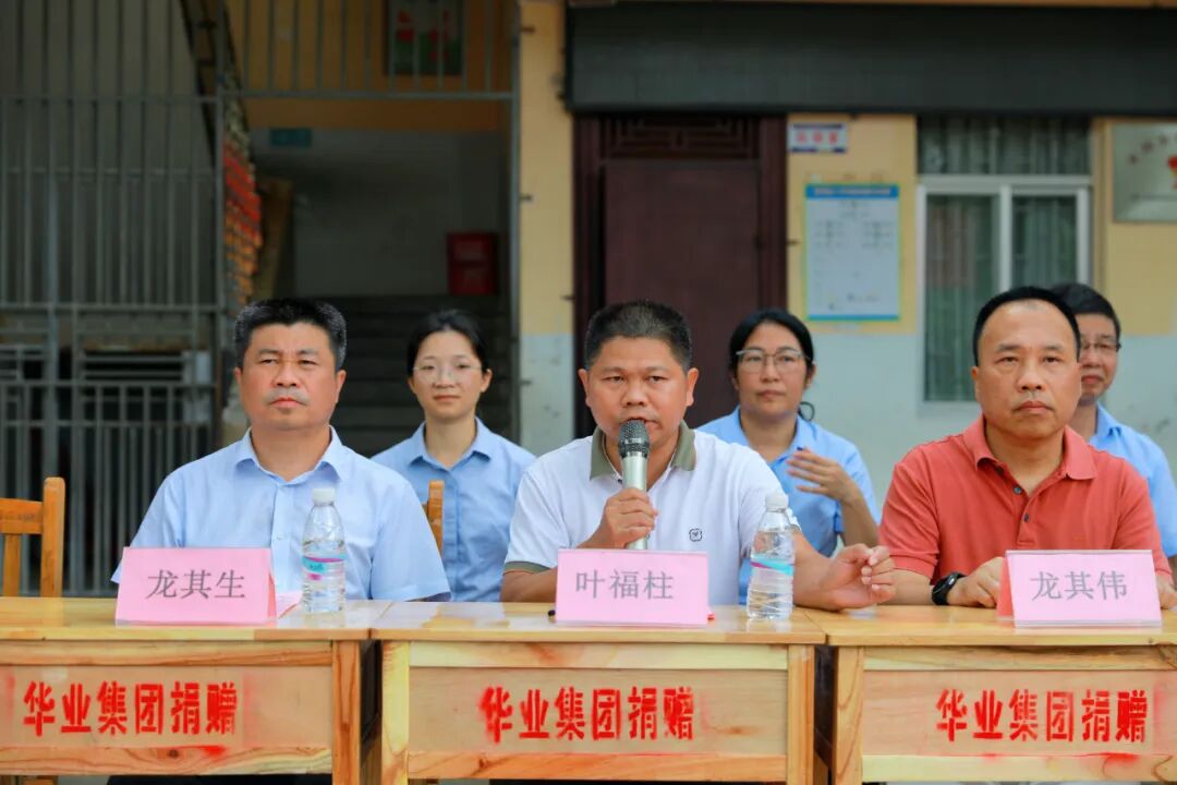捐贈儀式上,華業(yè)集團向希望小學捐贈嶄新課桌椅60套、愛心教育基金5萬元,并向教師贈送節(jié)日禮物等。校方領導在致辭中對華業(yè)集團長期以來的支持表示衷心的感謝,高度贊揚了兩位企業(yè)家點燃家鄉(xiāng)教育火種的善舉。他指出,華業(yè)集團十幾年如一日助力學校發(fā)展,從校園建設到獎教助學,為鄉(xiāng)村教育注入持久動力,給孩子們帶來了希望,更推動了家鄉(xiāng)經(jīng)濟社會的發(fā)展與進步。