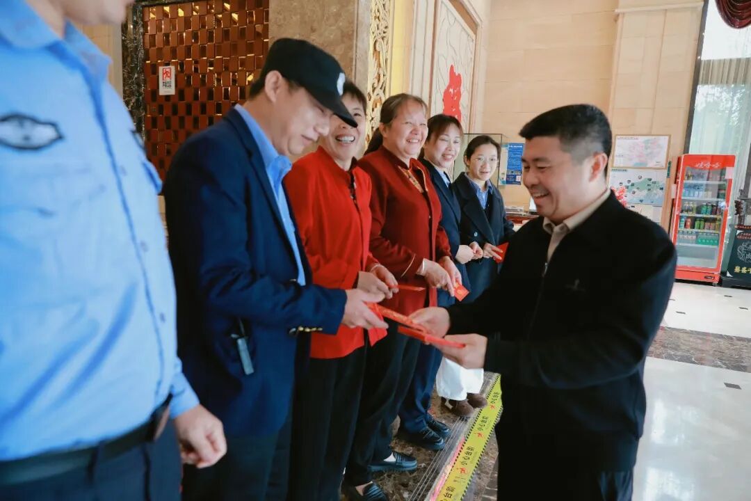 隨后,龍其生董事長為值守員工送上新春慰問紅包,祝愿大家在馬年里龍馬精神、身體健康,工作上策馬揚鞭、屢創(chuàng)佳績,生活中闔家幸福、萬事順?biāo)臁?/span>